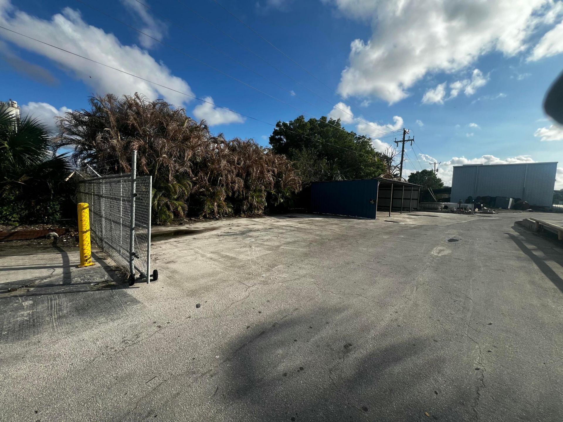 Great space for small shop. 100 feet long x 22 feet wide. Cover area plus outdoor area. .Doble fence secured. Bathroom. All electric power 220v and 120v. Security lights . double fence secured. Bathroom. no security deposit. First and last month. Great for work shop